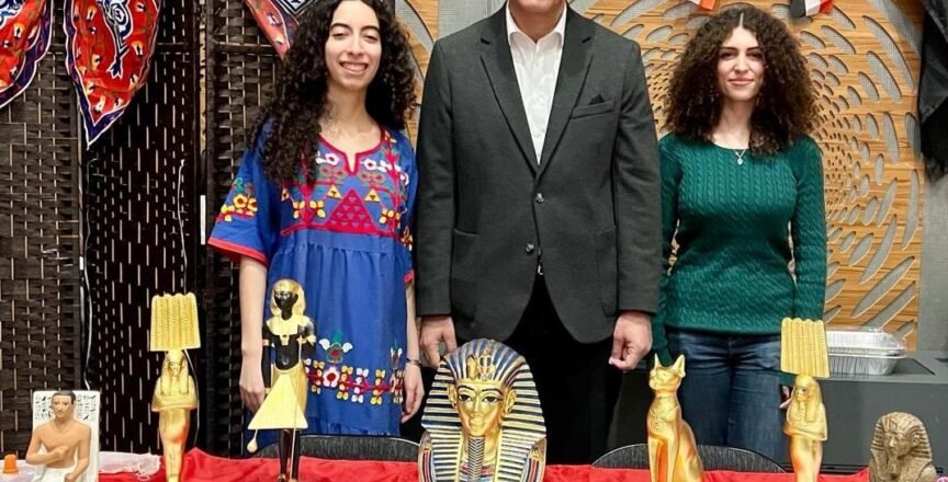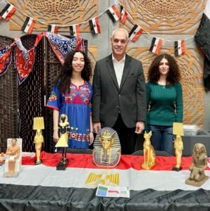 Dr. Ahmed Gaber, the Egyptian Cultural and Educational Counselor, participated in the 2026 Annual Arab Festival at McGill University, following a kind invitation from the Egyptian Students Association at the university. As part of efforts to promote Egypt’s culture and tourism in Canada, the Egyptian pavilion showcased replicas of a number of Pharaonic statues, reflecting the depth of Egypt’s civilization and its history spanning thousands of years. Medals featuring Pharaonic inscriptions and designs were also distributed to students participating in the festival, in a step aimed at enhancing awareness of Egyptian culture and strengthening cultural ties between peoples.